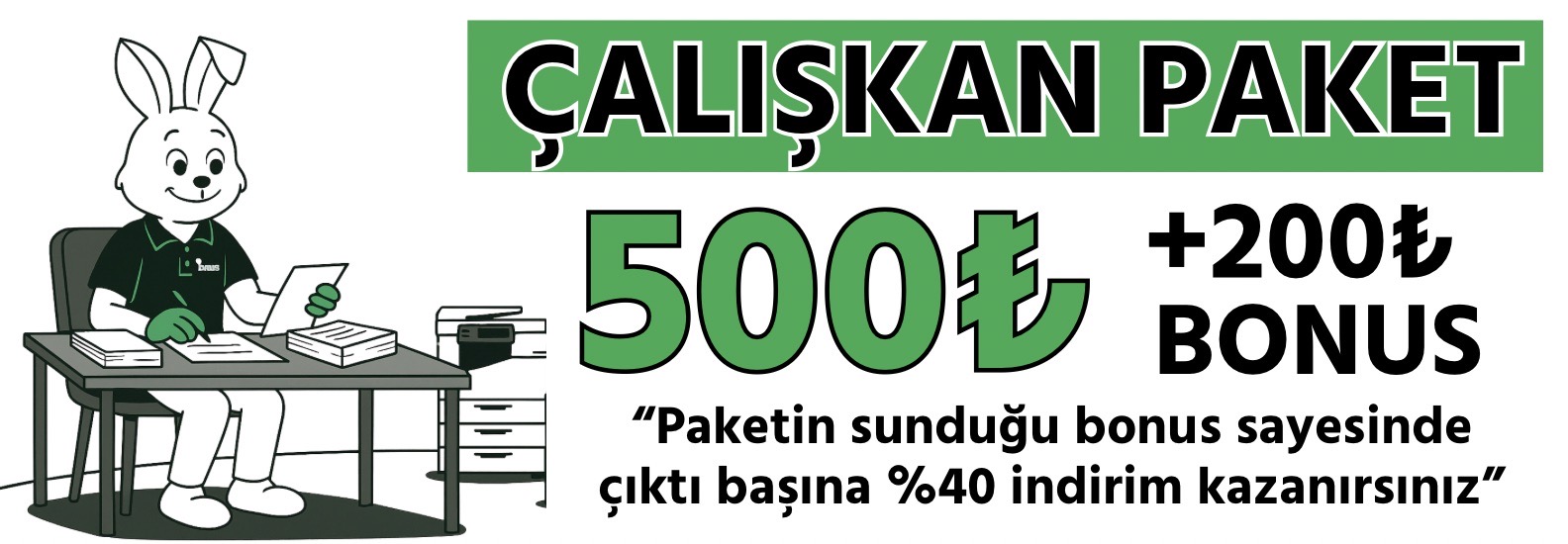 “Paket kampanyalarımızdan birini seçerek çok daha uyguna çıktı alabilirsiniz. Artık kendi yazıcınıza ihtiyacınız yok. Hemen başlayın!”